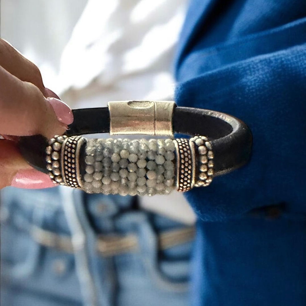 Beautiful handcrafted women's bracelets made with Spanish leather, the finest gemstones and silver. The clasps are magnetic and lock.…